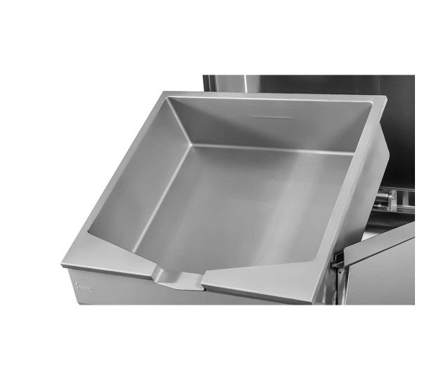 - Vaciado mediante basculación, disponible con elevación manual o motorizada, para un manejo cómodo y seguro.