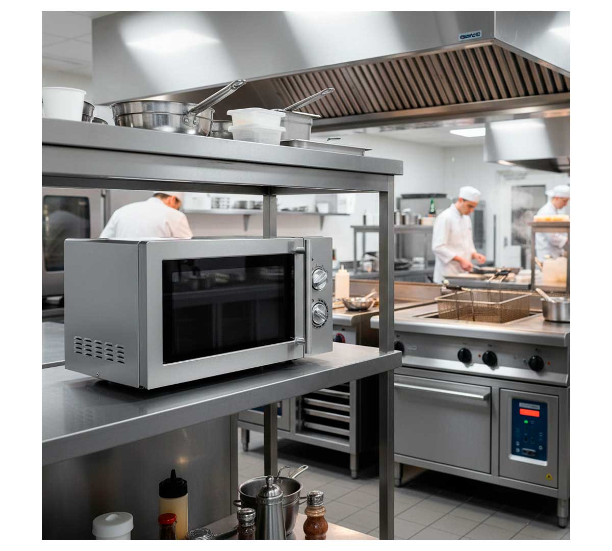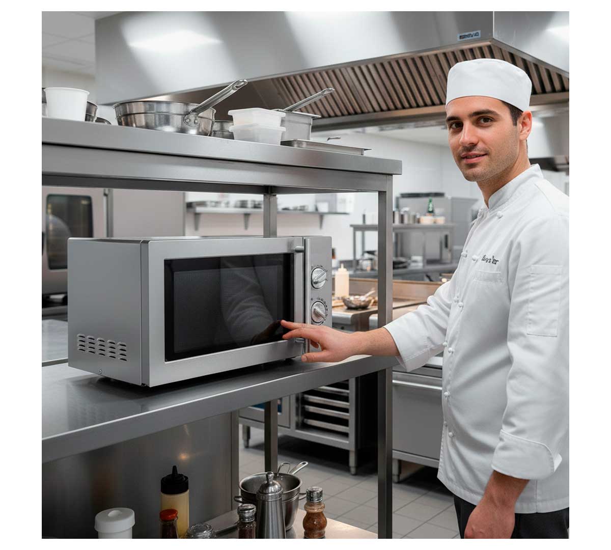 El Sammic HM-910 es un microondas profesional fiable, funcional y duradero, ideal para establecimientos que requieren un equipo eficiente y de uso sencillo para calentar o cocinar pequeñas porciones de alimentos de forma rápida y segura.
